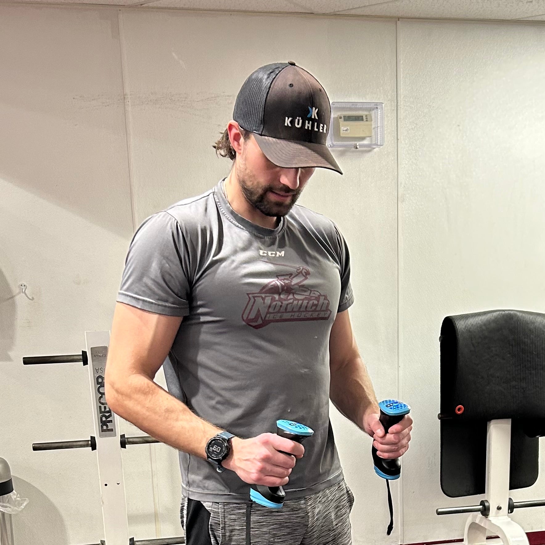 Kühler is a patented palm cooling device engineered to reduce muscle fatigue by lowering body temperature, providing real-time recovery and performance enhancement.