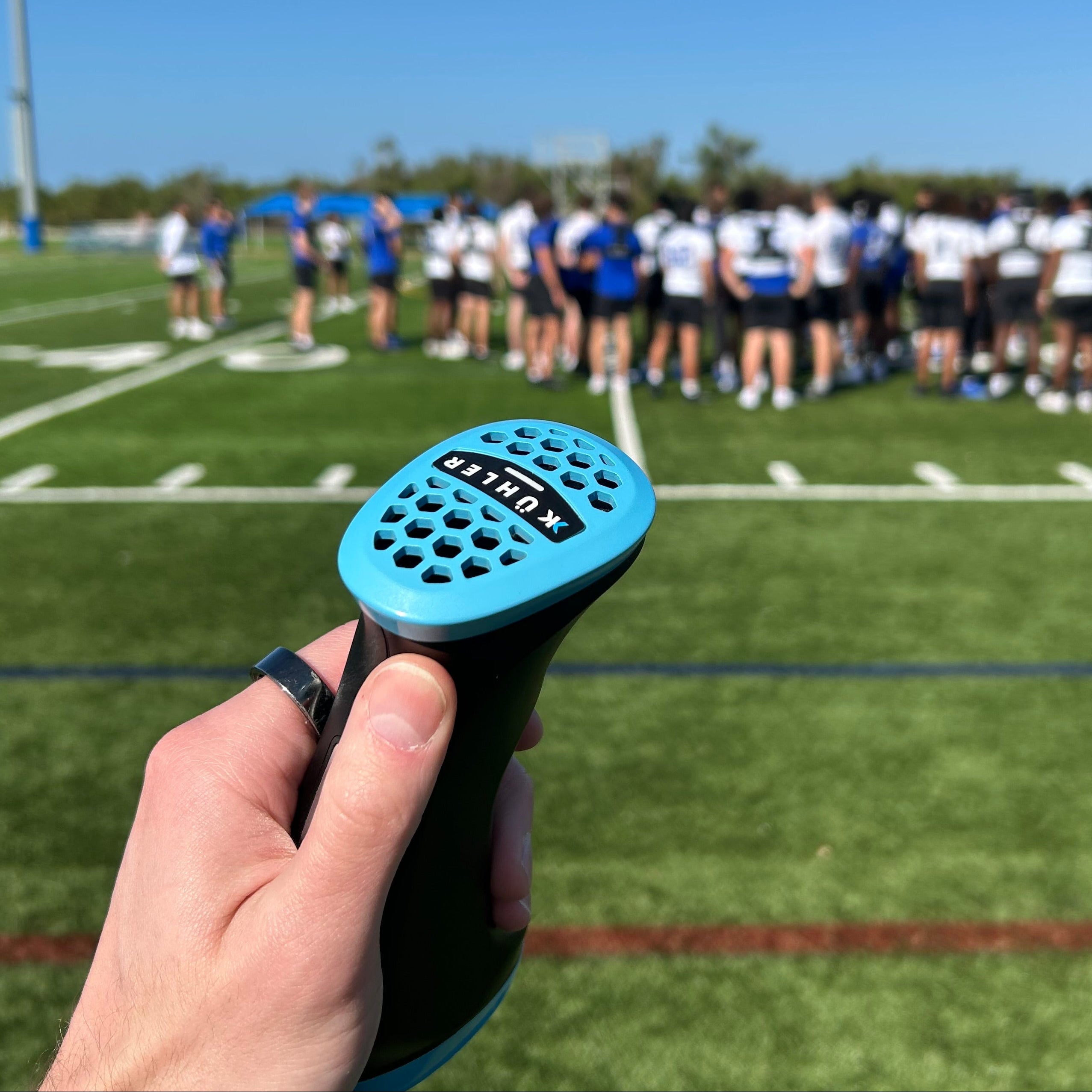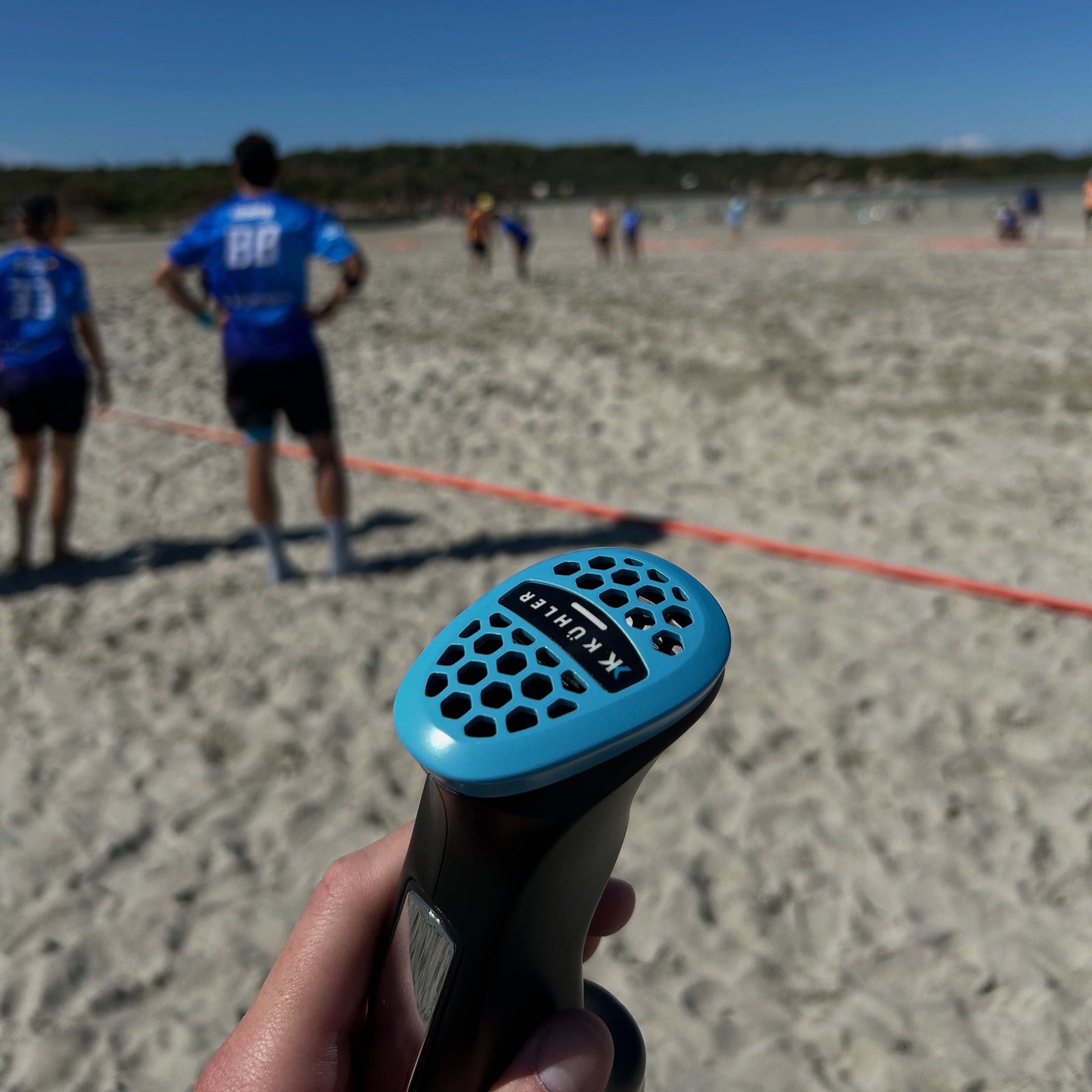 Kühler is a patented palm cooling device engineered to reduce muscle fatigue by lowering body temperature, providing real-time recovery and performance enhancement.